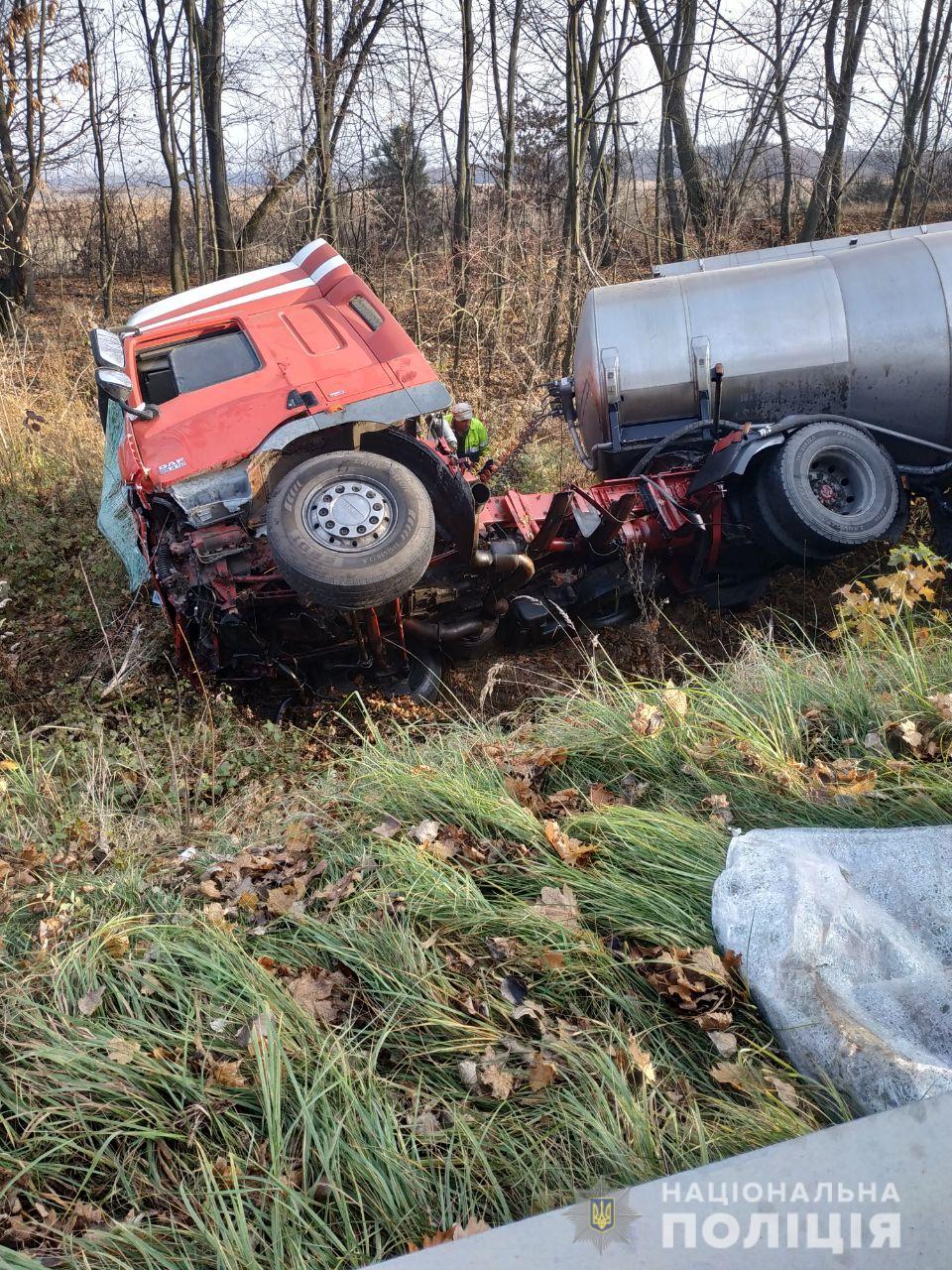 Водитель грузовика, 36-летний житель Радомышля, получил перелом ноги и многочисленные ушибы. Сейчас он находится в больнице.