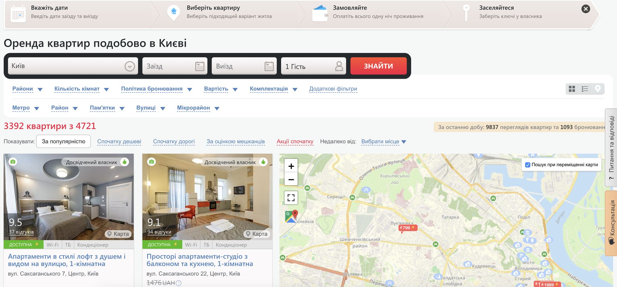За допомогою додаткових фільтрів і показчиків система підбере квартиру в Києві по району, по ціні, по вулиці або станції метро, навіть за близькістю до тієї чи іншої культурної або історичної пам'ятки.
