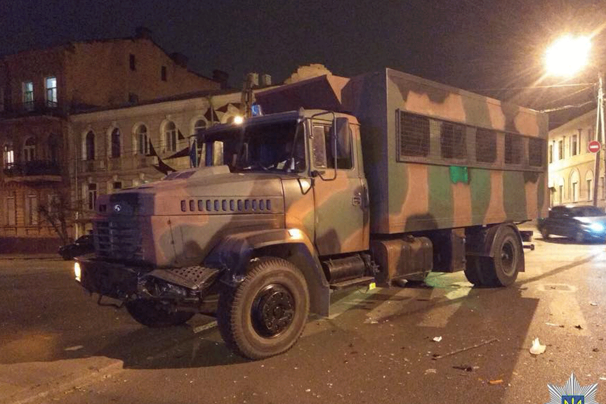 Накануне в 21-30 на пересечении площади Героев Небесной Сотни и улицы Шота Руставели столкнулись военный грузовик Краз и Volkswagen Passat.