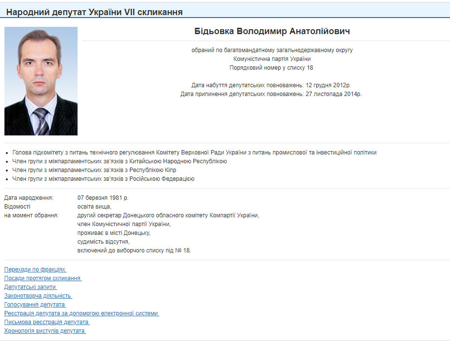 По данным издания, сейчас экс-нардеп Бидевка является представителем так называемой фракции "Донецкая республика".