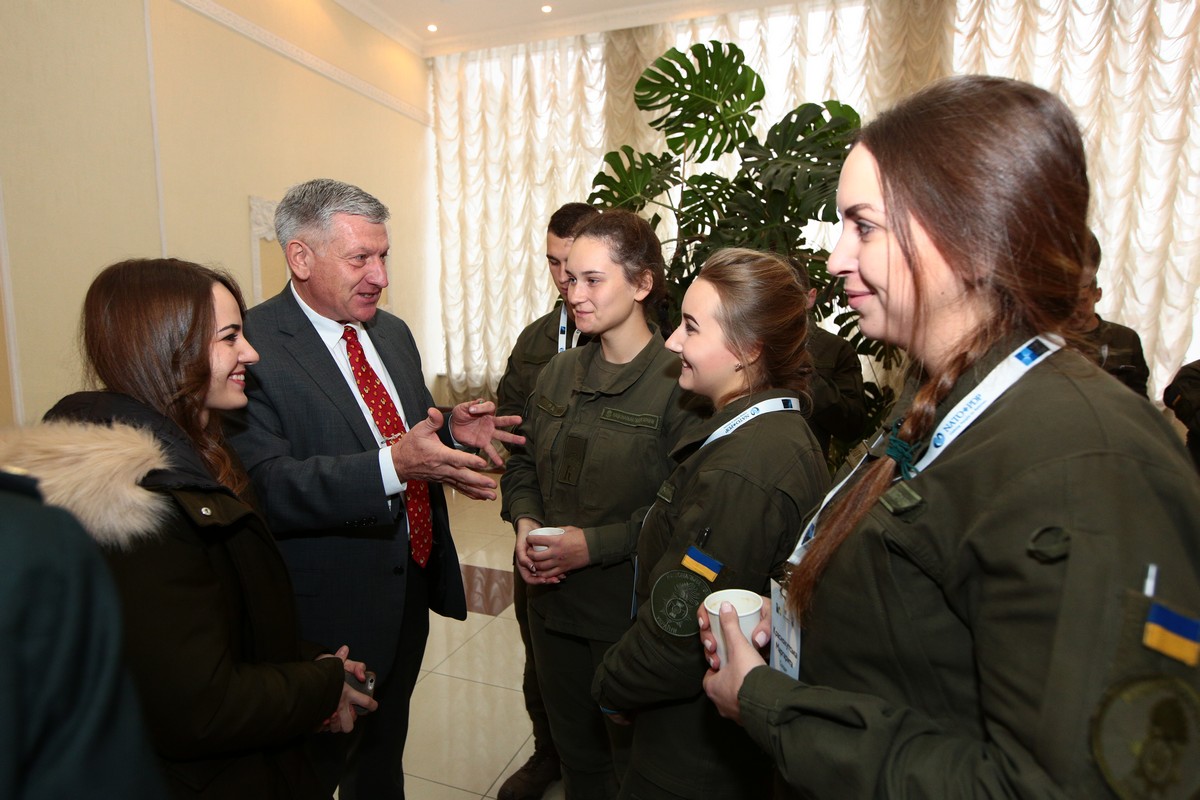 На фінальній церемонії з вітальним словом звернувся начальник Академії генерал-лейтенант Сергій Соколовський: «Вітаю Вас із завершенням четвертого і останнього в цьому році модулю. Колектив Національної академії не стоїть на місці. Всі працівники навчального закладу прикладають максимум зусиль, щоб створити всі умови для належної підготовки майбутніх офіцерів. Ми активно впроваджуємо міжнародний досвід у навчальний процес і з відповідальністю ставимося до подальшого розширення співпраці з міжнародними партнерами. У 2018 році у рамках співпраці між Програмою Професійного розвитку Україна-НАТО та Академією Нацгвардії було створено навчальну платформу, метою якої є проведення курсів та навчання військовослужбовців Академії та Національної гвардії України, на яких будується діяльність НАТО. На наступний рік ми плануємо проводити подібні заняття як з курсантами, так і офіцерами навчального закладу. Я впевнений, що 2019 рік буде плідним та насиченим».