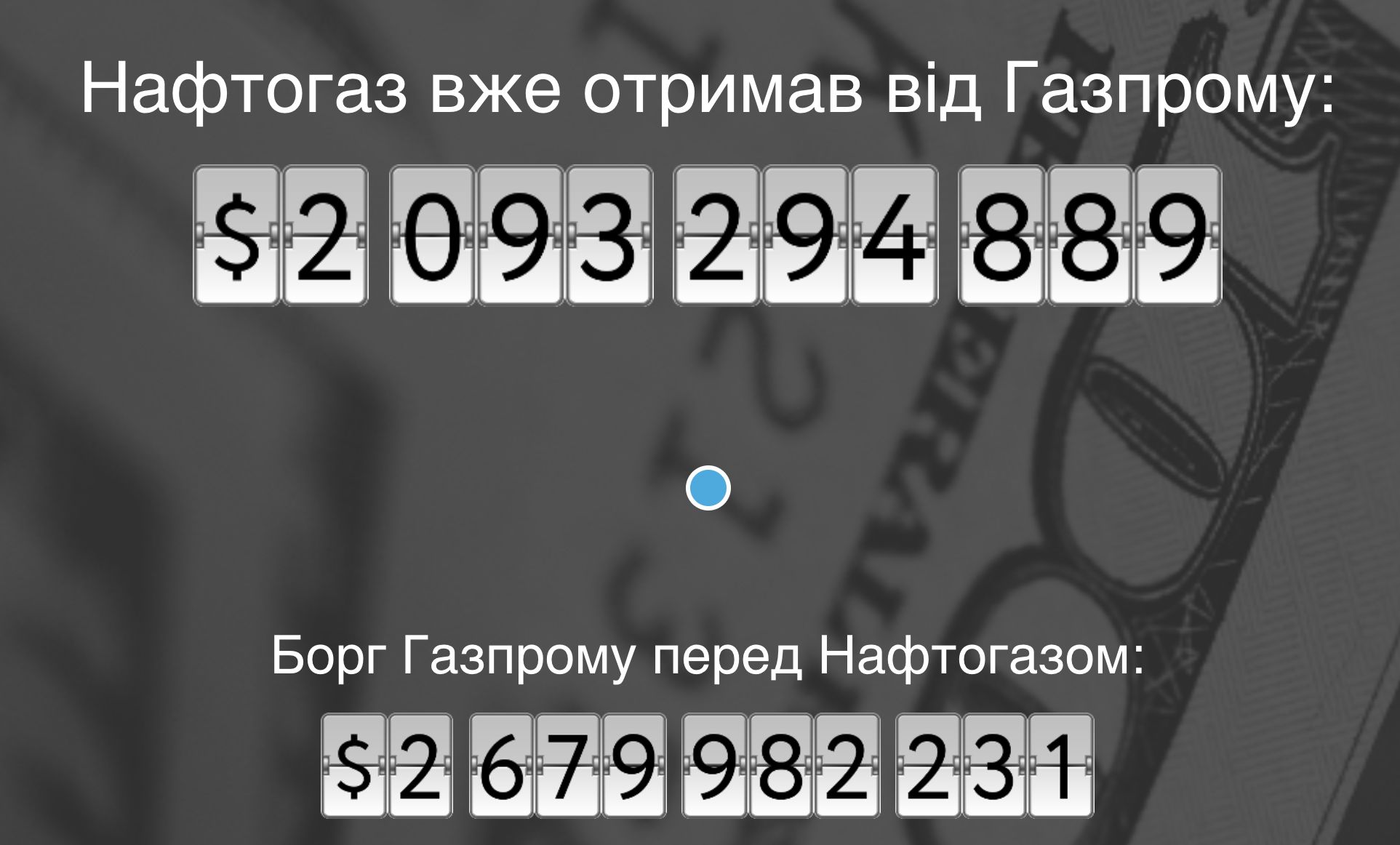 Компания "Нафтогаз Украины" запустила счетчик, который показывает долг российского "Газпрома" в реальном режиме времени.