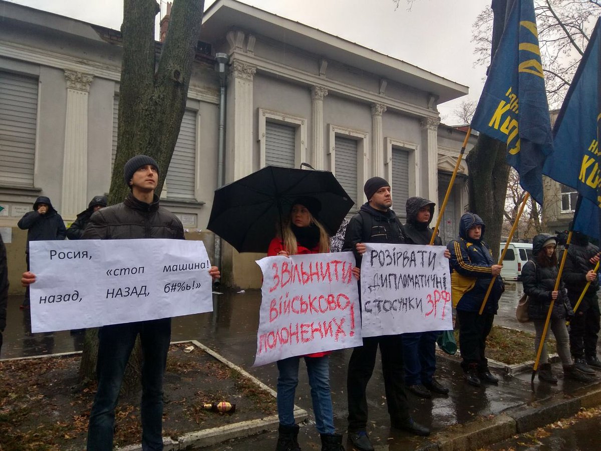 Вимоги мітингарів біля Консульства РФ: закрити держустанови Росії, посадити агентів Кремля, закрити канали NewsOne, 112, ІНТЕР.