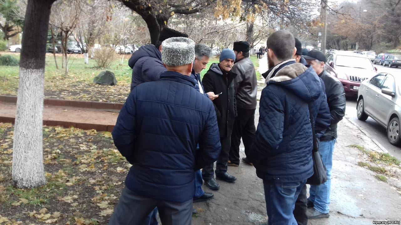 Жители Крыма собираются у здания Киевского районного суда в Симферополе, чтобы поддержать задержанных ФСБ украинских моряков, которым будут избирать меру пресечения.