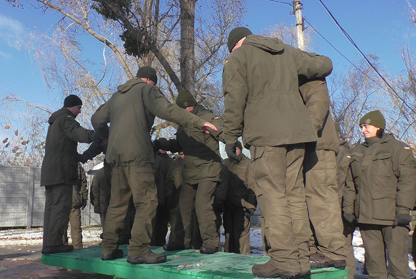 «Мені 18 років, але до Національної гвардії я прийшов за своїм бажанням, не хотів відсиджуватись на дивані. Мені важливо розуміти, що і як я роблю. Тому, крім військової історії, дуже люблю психологію, психологічні тренінги та тести. Що стосується цієї вправи, то вона реально допомагає працювати в команді. Люди починають кооперуватися, звертатися одне до одного по допомогу. Задачу виконали, бо були ініціативи і можливість вибрати кращий спосіб. Крім того, ми дослухалися один до одного», – поділився своїми міркуваннями солдат Олексій Павлов.