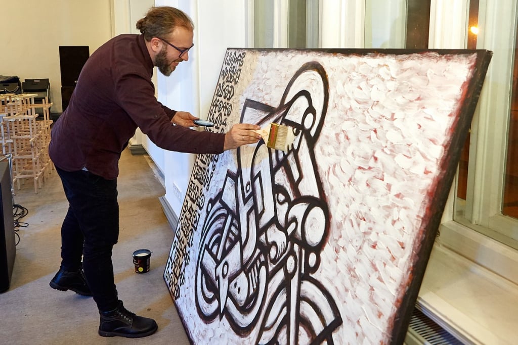 Первым свою работу представил Роман Минин — картину “Скорая помощь” он писал перед аукционом, привёз её еще незалакированную, покрывал лаком уже в ХША. По словам художника, к картине прилагается песня — она нанесена тайнописью вдоль левого края “Скорой помощи”. “Песня о том, что нужно гнать”, - рассказал Минин. А ведущими торгов последних и самым ожидаемым четырёх лотов — двум картинам Макова, одной картине Гамлета и работе Минина, провели Сергей Жадан и Всеволод Кожемяко.