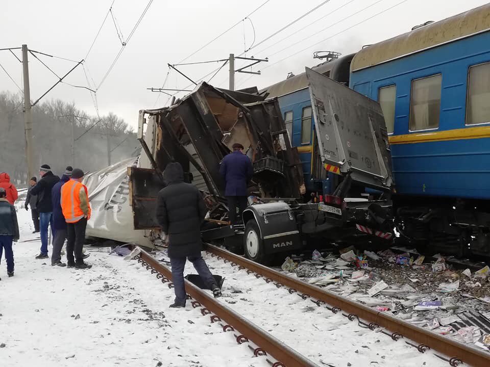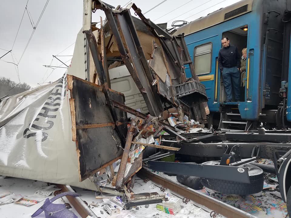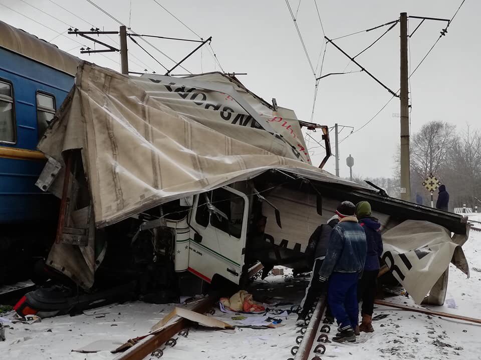 Под Харьковом на ж/д переезде грузовик угодил под поезд (фото)