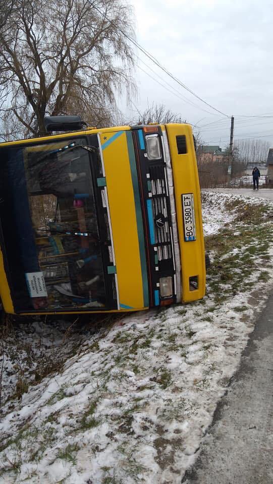На Львовщине перевернулась маршрутка. Предполагаемая причина ДТП – гололедица, сообщает "Вартові еспресо".