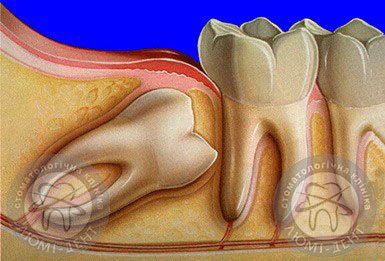 Миллионы лет назад люди были хищниками, ели сырое мясо и грубую пищу. В то время челюсти были увеличены, поэтому все зубы, включая восьмерки, комфортно помещались на своих местах. Со временем все поменялось: и образ жизни, и особенности пищи. Сами челюсти стали намного короче, чем у первобытных людей и зубы-восьмерки уже перестали помещаться. Располагаясь коронкой и корнями в самой челюсти, они добавляют проблем не только владельцу, но и стоматологу.