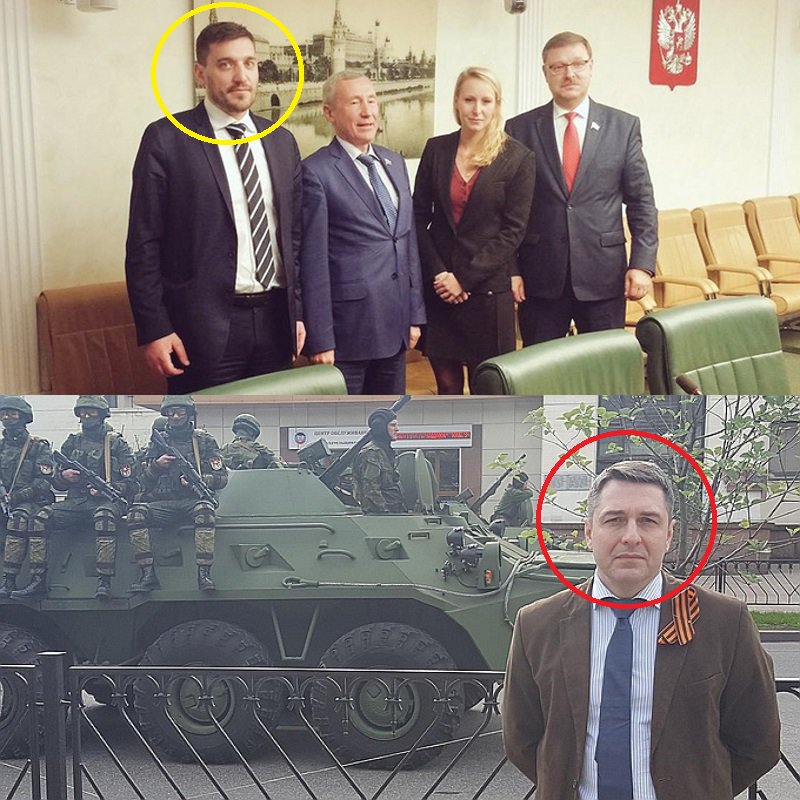 Как сообщили в СБУ, с флагом террористической группировки позируют Сорлин Фабрис, член «Международного аналитического центра "Катехон"», связанного с российским бизнесменом Константином Малофеевым, и Ксавье Моро, гражданин России с 2013 года и участник фейковой организации «Восток Франция — Солидарность Донбасс».