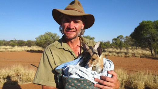 Директор зоопарка спас кенгуру, когда тот был детенышем, когда вытащил его из сумки матери, сбитой автомобилем.
