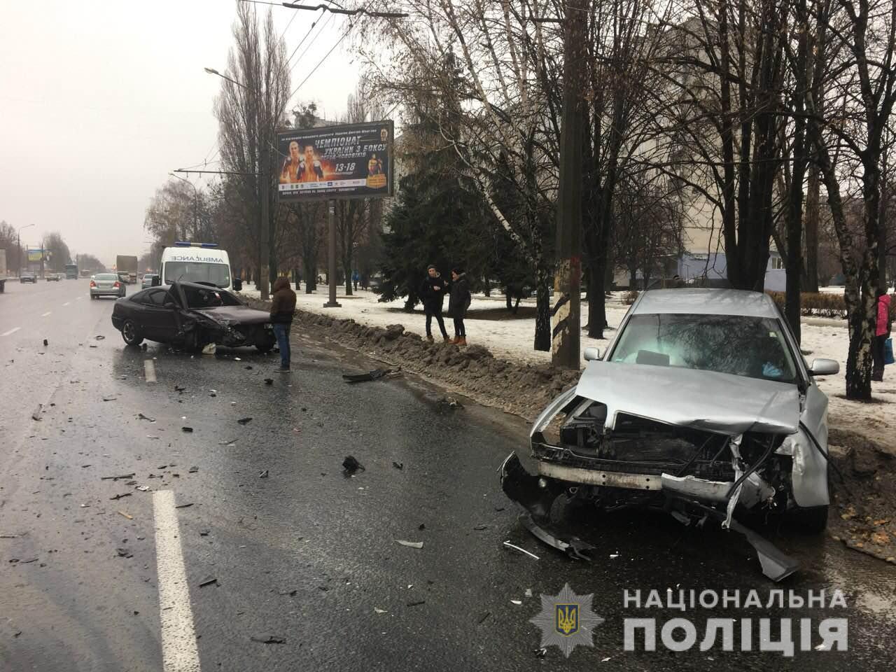 ДТП произошло сегодня около 12:00 на проспекте Юбилейный в Харькове. Полиция установила, что столкновение произошло между автомобилем "Mazda 826" под управлением 22-летнего водителя и автомобилем "Audi a-6" под управлением 36-летнего мужчины.