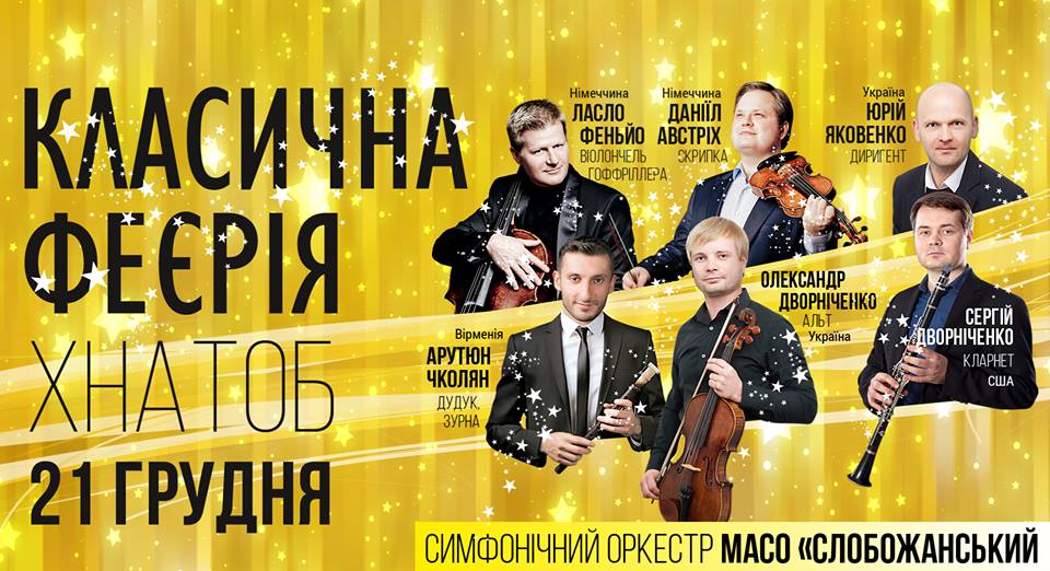 В пятницу, 21 декабря, на сцене Харьковского оперного театра состоится благотворительный концерт мировых звёзд классической музыки «Классическая феерия». Музыканты с разных континентов уже в седьмой раз приедут в Харьков, чтобы подарить детям два часа волшебной музыки и собрать средства для детских лечебных учреждений и учебных заведений для детей с ограниченными возможностями. Традиционно, 60% мест в зале будут бесплатно отданы детям из интернатов, детских домов, малообеспеченных и многодетных семей. Средства, собранные с продажи остальных билетов, пойдут на благотворительность. В этом году на них будет куплен принтер Брайля для слабовидящих детей. Программу нынешнего концерта, состоящую преимущественно из шедевров классической музыки, разнообразят мелодии армянского дудука. Среди инструментов – виолончель 1695 года работы итальянского мастера Маттео Гоффриллера.