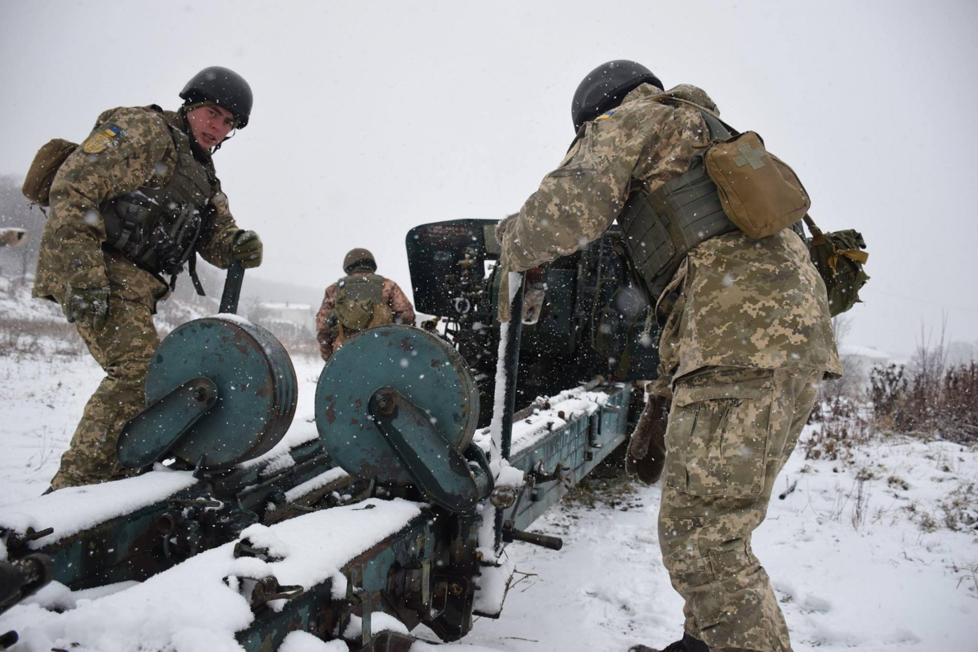 Тернопільські артилеристи проводять навчання зі спеціальної підготовки на гаубицях «Мста-Б», 152 мм калібру. Семитонна артилерійська система, яка призначена для знищення живої сили й техніки противника з легкістю перевтілюється на слухняну «іграшку», як кажуть гармаші в руках професіоналів. Заняття з підготовки особового складу організовують молоді командири, разом з тим удосконалюють свої навички в управлінні підрозділами. Не зважаючи на погодні умови, обслуги на час відпрацьовують злагодженість своїх дій, а обчислювачі та навідники виконують нормативи на залік. Артилеристи, котрі нещодавно повернулись із зони ООС, практично "живуть" надією, щоб їх повернутися назад і стверджують, у разі загострення готові до виконання найскладніших завдань, щоб захистити українських громадян від знахабнілих окупантів.