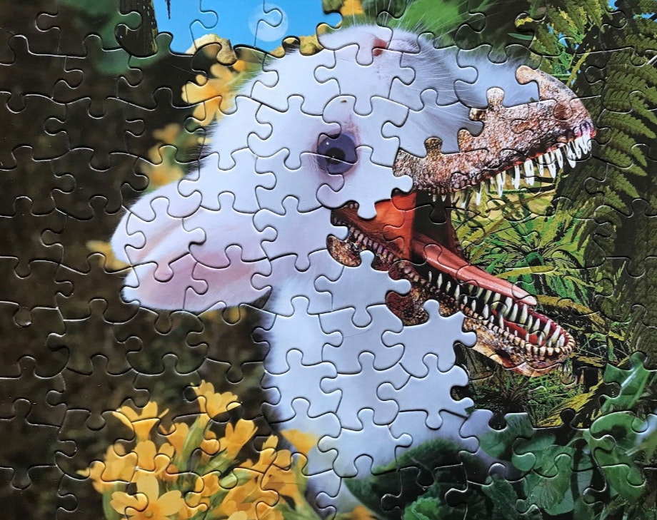 «При создании пазлов обычно используется один и тот же шаблон, — объясняет Клейн. — Это делает фрагменты взаимозаменяемыми, и я могу соединить несколько головоломок, чтобы сделать сюрреалистический образ».