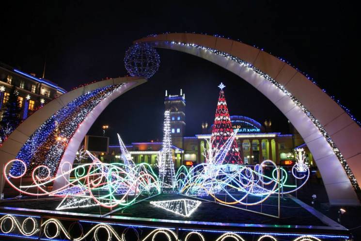 Праздничная иллюминация на Привокзальной площади включается ежедневно с 6:00 до 8:00 и с 16:00 до 00:00.