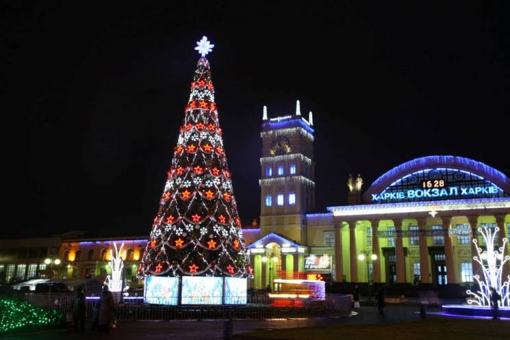 "18-метровую зеленую красавицу сформировали из ветвей более 400 елок из Змиевского лесного хозяйства. Величественную конструкцию украшают около 100 дневных украшений в национальных цветах и почти 80 тысяч светодиодных лампочек, которые будут создавать праздничную атмосферу в темное время суток. Возле елки традиционно курсирует маленький поезд", - рассказали в пресс-службе.