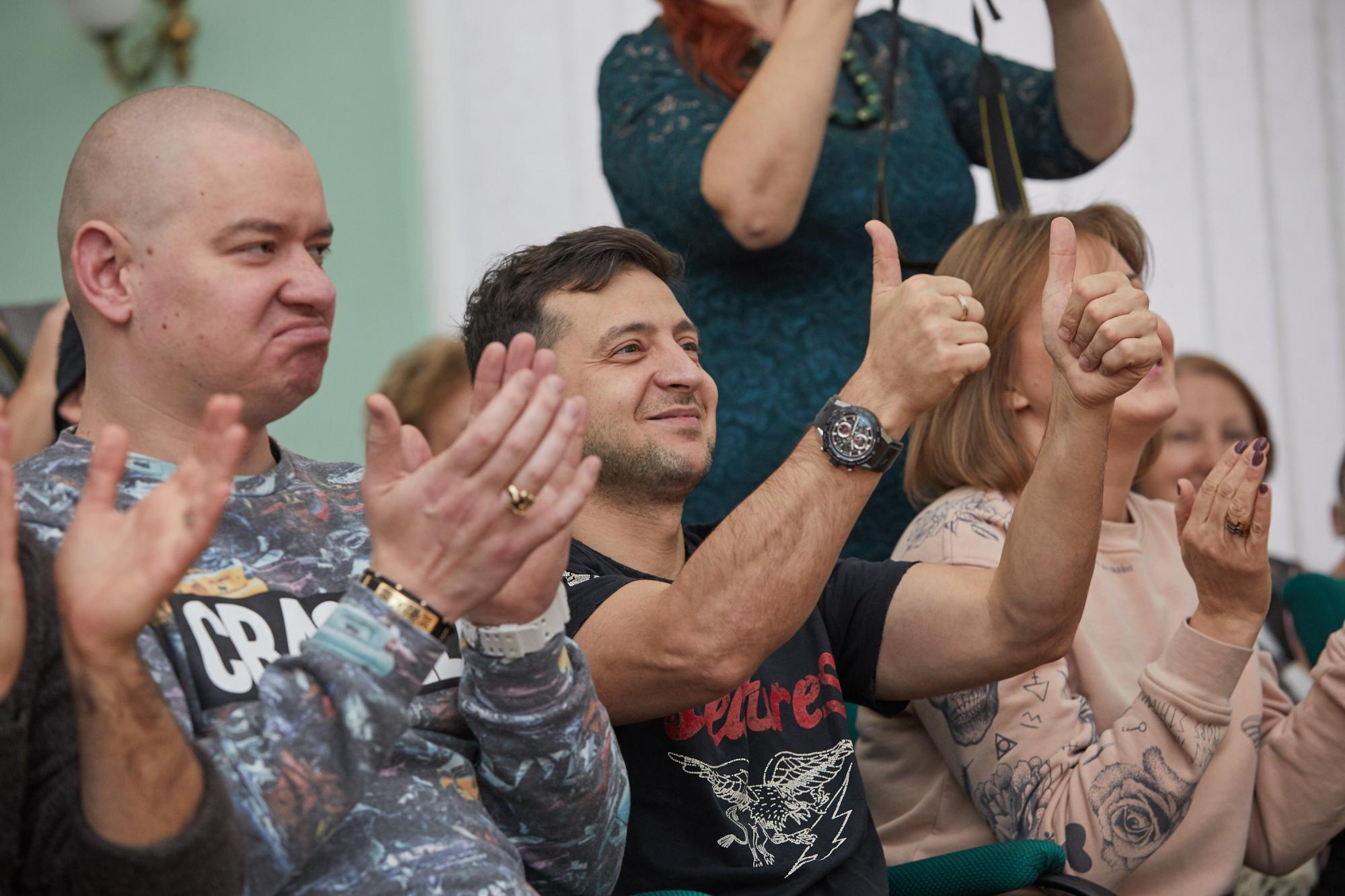 «Нас пригласили в уникальную 100-летнюю школу-интернат для слабовидящих детей. Дети там замечательные. Кто-то из них даже поступит в консерваторию, у них есть победительница конкурса «Україна має талант». В общем, дети очень талантливые. Они нас растрогали, были даже слезы – скупые мужские», – поделился руководитель студии «Квартал 95» Владимир Зеленский.