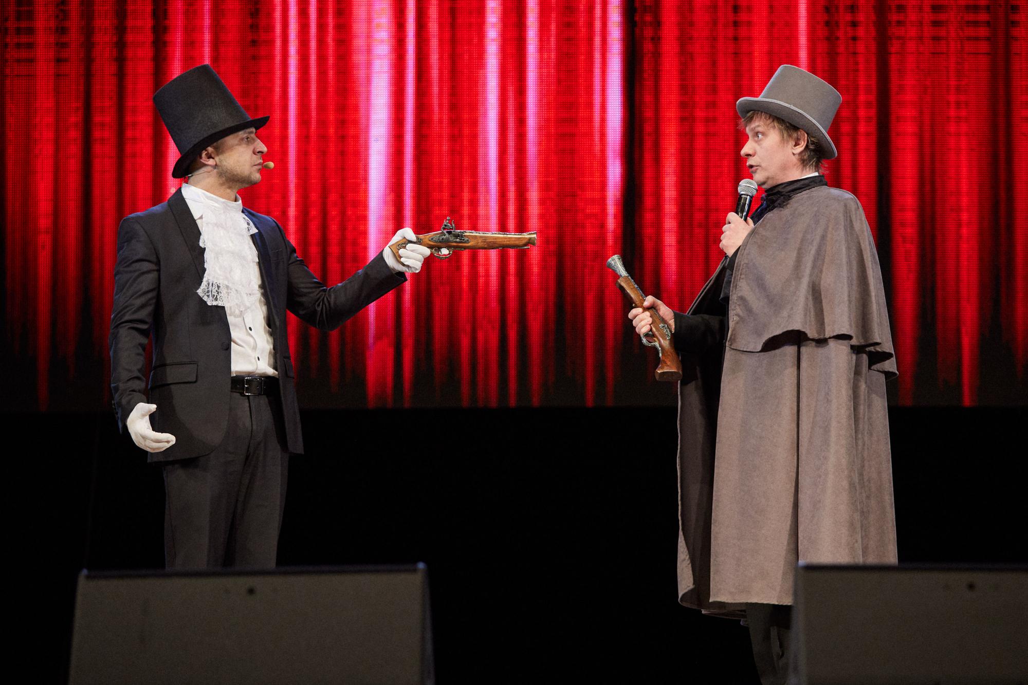 Отметим, что до выступления актеры студии «Квартал 95» посетили школу для слепых детей. Там они были зрителями. Говорят, выступление детворы заставило даже расплакаться.