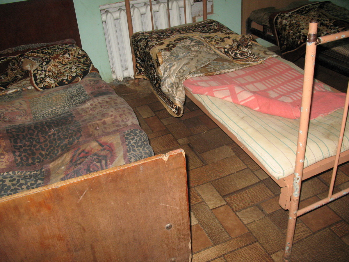 По оценкам экспертов, самая критическая ситуация в Панютинском ПНИ. В комнате реабилитации установлены металлическая дверь с решеткой на надзорном окошке и решетками на окнах. Сюда, по словам подопечных, на 2-3 месяца помещают непослушных жильцов. В комнате нет воды, санузла и доступа к свежему воздуху. Из мебели есть только кровати. В шестом корпусе для подопечных, нуждающихся в особом присмотре, чувствовалась вонь и духота. Корпус и придомовая территория ограждены металлической сеткой. В отдельных комнатах нет постельного белья и подушек, матрасы старые и грязные. Вместо туалетных стульев тут используют ведра. Люди целыми днями сидят возле телевизора и месяцами не бывают на улице.