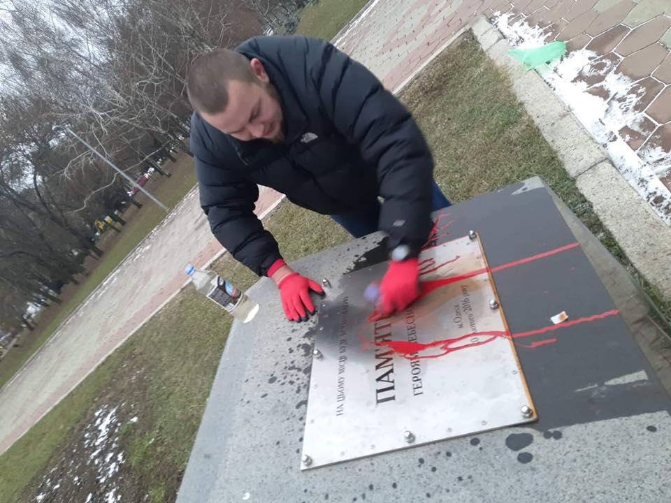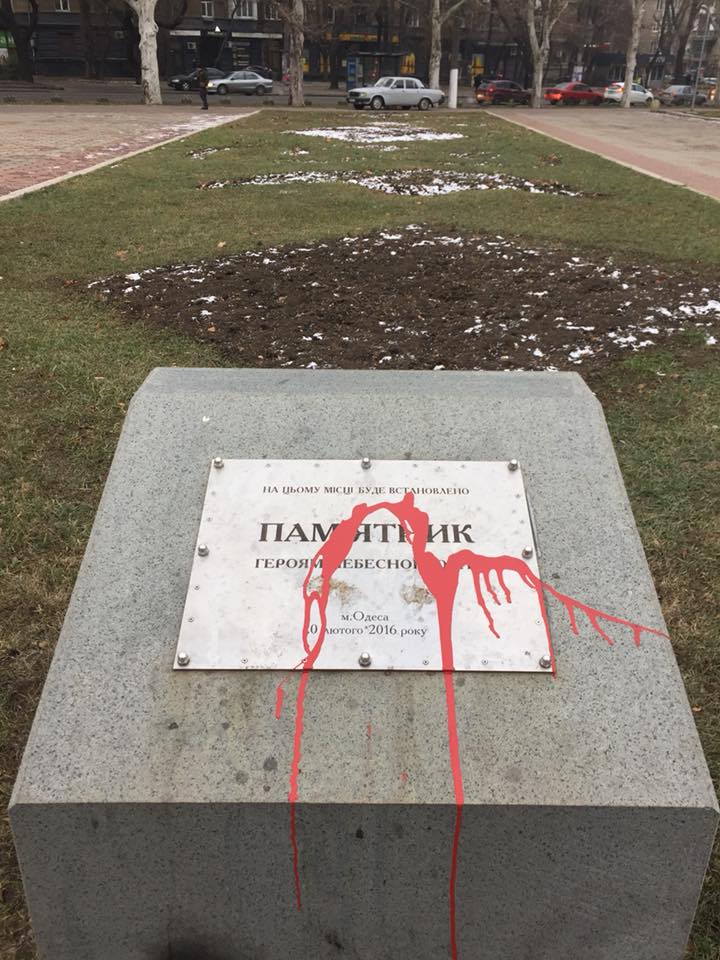 Сьогоднішньої ночі невідомі потвори облили краскою пам’ятний камінь Героям Небесної Сотні, який встановлений навпроти Одеської державної адміністрації.