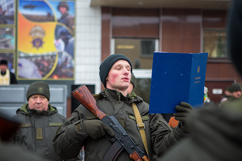 «Це важлива подія та відповідальний крок у житті, ви починаєте військову службу. Ви присвячуєте себе службі українському народові. Вітаю вас з цією знаменною подією, щиро бажаю вам міцного здоров’я, мужності, наснаги та відданості Батьківщині. Хай вам щастить!», - привітав присутніх начальник Національної академії Національної гвардії України генерал-лейтенант Сергій Соколовський.