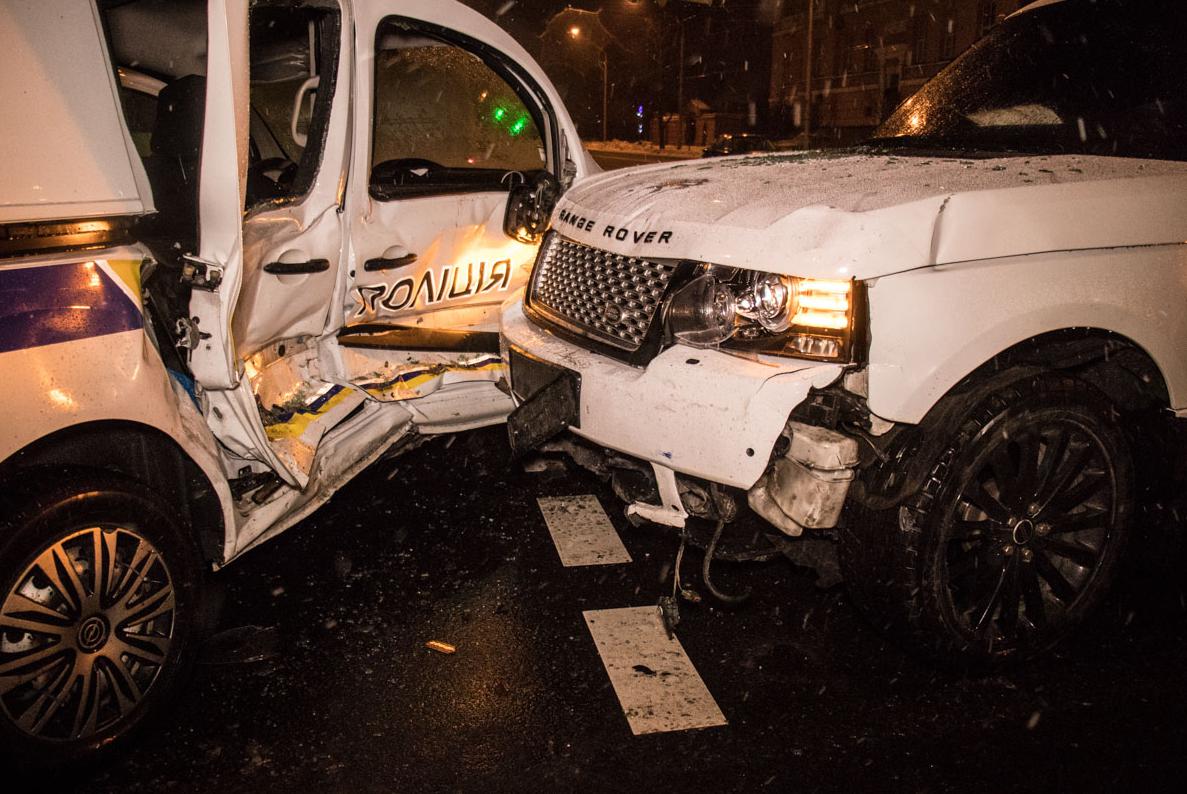 В центре Киева произошла авария - внедорожник Range Rover въехал в авто Главного управления национальной полиции Renault Kangoo, сообщает Еспресо.