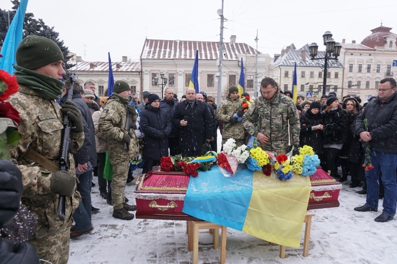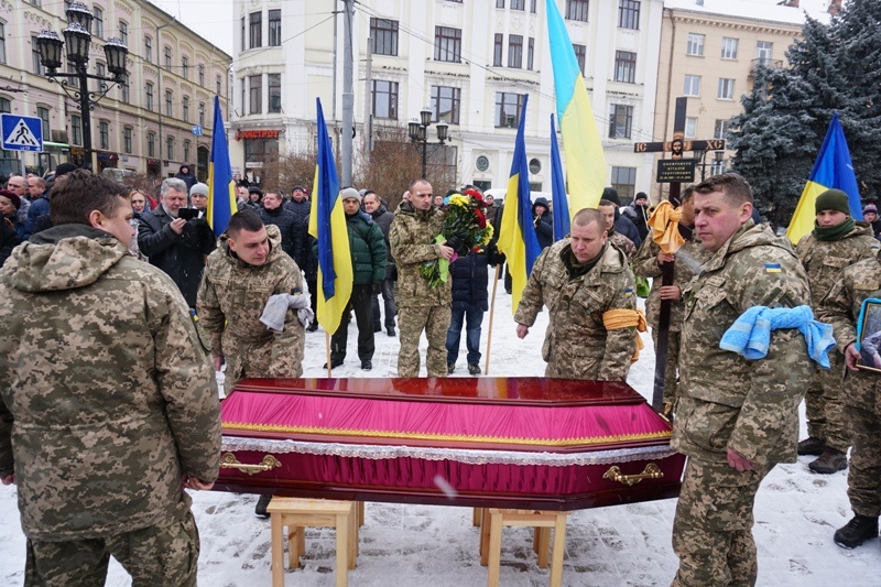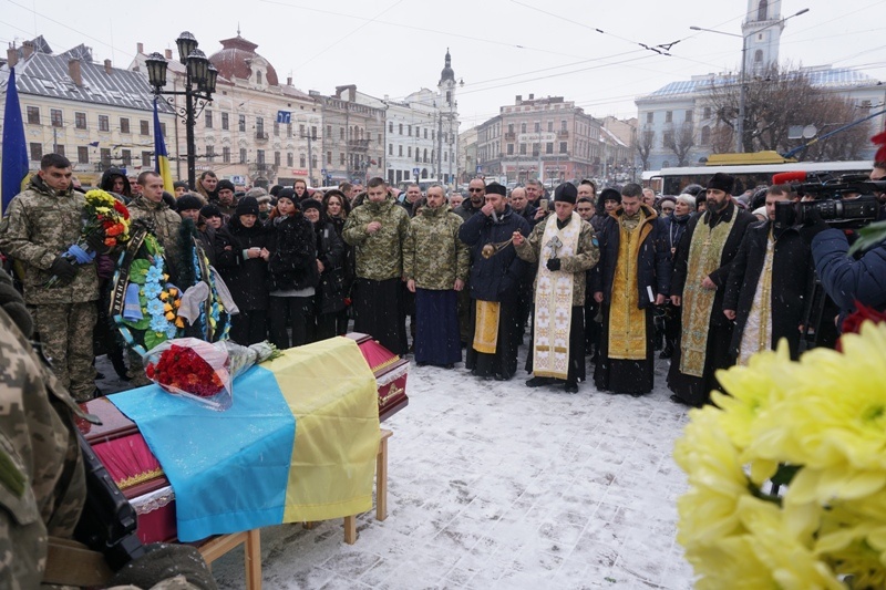 В Черновцах более сотни местных жителей приняли участие в прощании с погибшим на фронте бойцом Виталием Онуфрейчуком.