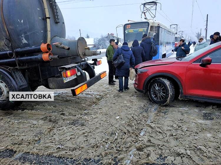 В соцсетях сообщают, что движение трамвая №27 на месте ДТП было затруднено.