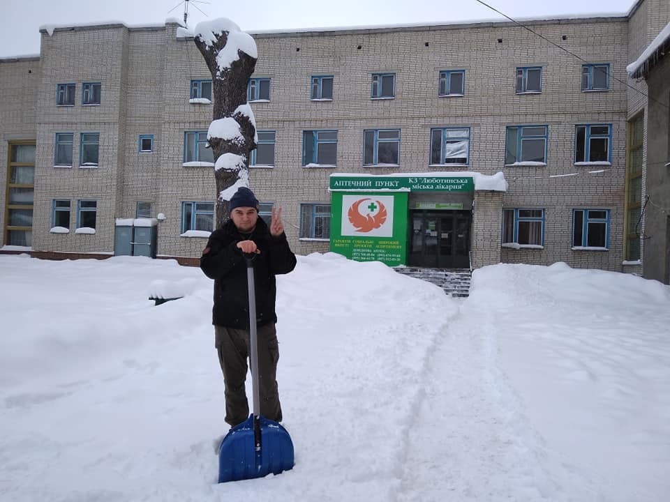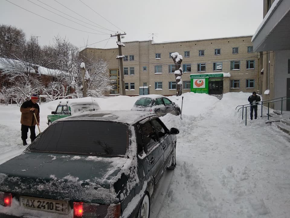 Именно это фраза недоумка азарова сразу завертелась у меня в голове, когда я приехал сегодня на работу в Люботинскую городскую больницу. Кто не знает, частную практику по педиатрии я совмещаю с работой гинекологом в этой больнице. Больничный двор не чищен, работал один дворник, позже присоединился еще один. Для того, чтобы была возможность заехать на территорию больницы пациентам и скорой помощи, пришлось тоже взять лопату в руки.