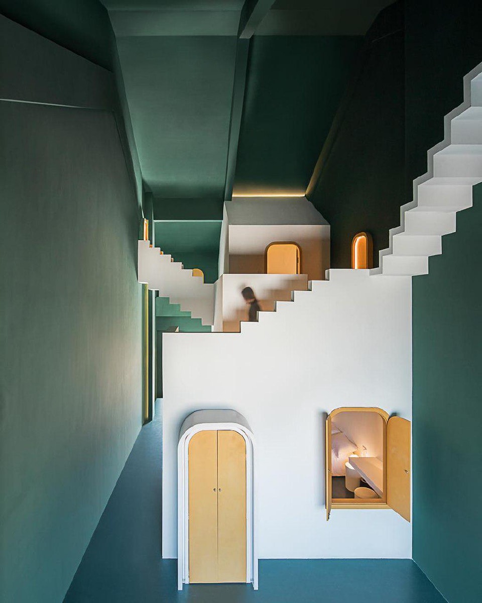 Китайская архитектурная студия Studio10 представила отель, на дизайн которого ее вдохновили работы нидерландского художника Маурица Эшера. Он знаменит своими оптическими иллюзиями — в частности, картинами с бесконечными лестницами.