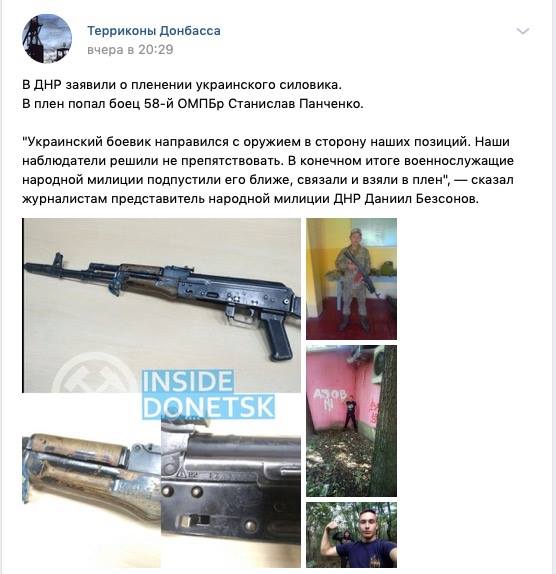 В тоже время в пабликах сепаратистов называют им плененного бойца. По их данным им оказался боец 58-й бригады Станислав Панченко.