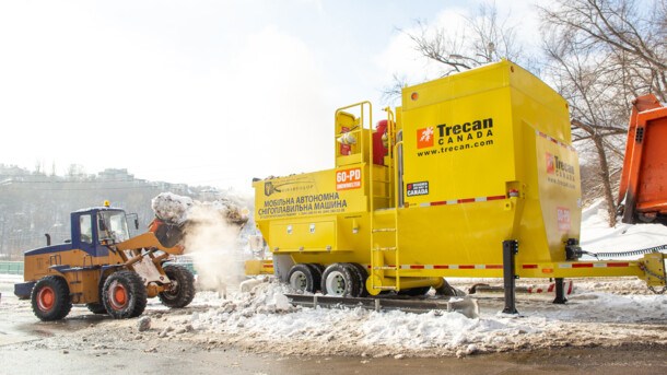 В Киеве провели тестовый запуск первой в Украине мобильной снегоплавильные установки. Две канадские снегоплавильные машины TRECAN 60-PD были приобретены в декабре 2018 года.
