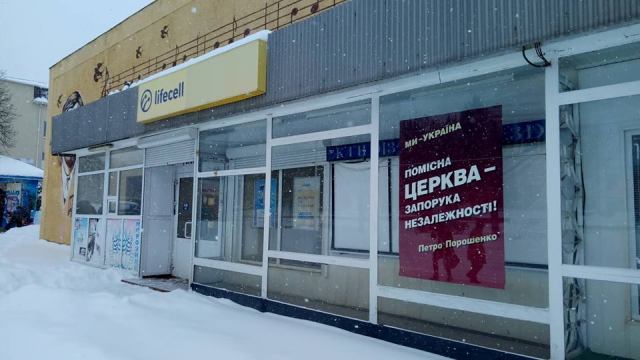 Плакат с надписью «Мы - Украина. Поместная церковь - залог независимости. Петр Порошенко» размещен на кинотеатре имени Тараса Шевченко, говорится в сообщении:
