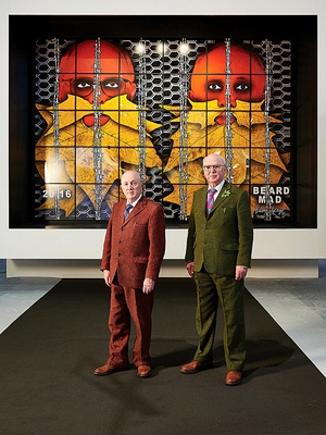 Главным украшением этого вернисажа, который по традиции перетекает в ужин прямо среди ярмарочных стендов, был дуэт британских художников Гилберта и Джорджа, специальных гостей BRAFA. Аллеи между стендами украшены огромными работами художников из свежей серии «Бородатых картин», а сами Гилберт и Джордж, знаменитые своими перформансами, дефилировали по ярмарке, одетые в истинно английские костюмы. В галерее Bernier/Eliades работы знаменитой пары можно купить — большие фотоколлажи 2013 года стоят по €137 тыс.