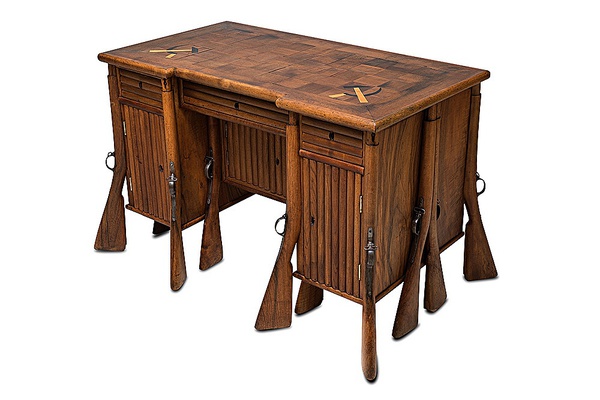На ярмарке очень много галерей дизайна, которые показывают и отдельные предметы, и целые интерьеры, собранные в разных стилях ХХ века. В таком контексте решение Кристины Краснянской, владелицы единственного русского участника ярмарки, галереи «Эритаж», привезти предметы советского дизайна 1920–1970-х годов выглядит совершенно правильным. На стенде галереи внимание сразу привлекают стол с ножками из прикладов винтовок, ковер «Ленин и Нариманов», трибуна со звездами и серпами-молотами, сделанная для детского трудового лагеря Леноблоно (Ленинградский областной отдел народного образования).