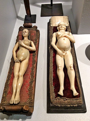 Интересно, что на BRAFA галереи разных специализаций перемешаны друг с другом, а не разделены на блоки «старых мастеров», «модернизма», «мебели и дизайна» и так далее, как, например, на нидерландской ярмарке TEFAF. При этом большинство галерей и у себя на стенде показывают смесь из старого и современного искусства (хотя есть, конечно, и исключения). Много предметов и скульптуры: столик Диего Джакометти с лягушками стоит €490 тыс. (галерея Mathivet), маленькое полотно Дэмиена Херста, на которое влезло всего два цветных кружочка, — €165 тыс. (галерея von Vertes), мелкие древнеегипетские скарабеи и античные сосуды у Phoenix — от €10 тыс. до €25 тыс. Очевидно популярно направление кабинетных редкостей, позволяющее сочетать все со всем и собирать не крупные и не особенно дорогие, но уникальные предметы. Среди резных и серебряных орехов и курительных трубок, миниатюры, коробочек тысячи назначений попадаются вещицы невероятные. Такие как анатомическая модель беременной женщины из слоновой кости длиной с ладонь, с поднимающимися руками и открывающимся животом — кажется, часть внутренностей растерялась с XVII века, но младенец размером с ноготок на месте (€37,5 тыс., галерея Finch & Co).