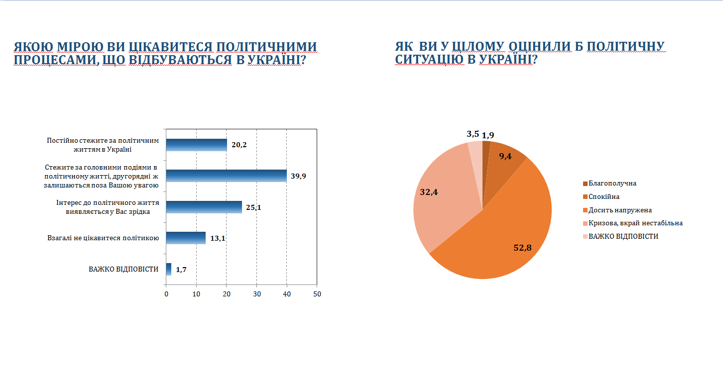 Участие в опросе приняли 2004 респондента (от 18 лет и старше) в 24 областях Украины и г.. Киеве. Теоретическая погрешность выборки не превышает 2,2%.