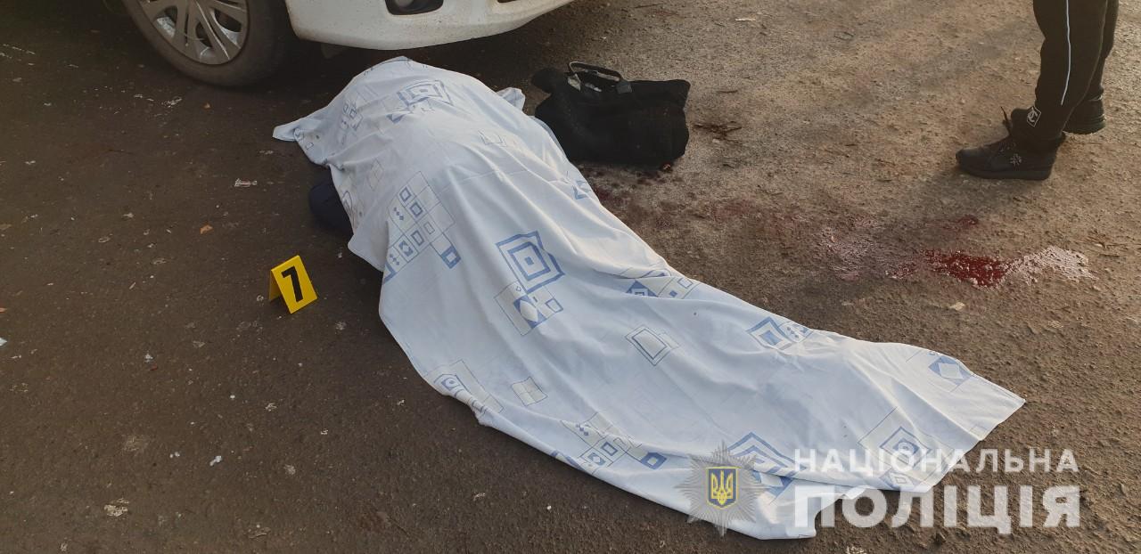 Жінка загинула на місці події, чоловік - у кареті швидкої допомоги. Завдяки оперативним діям поліцейських зловмисник був затриманий оперативним співробітником Інгульского відділу поліції.