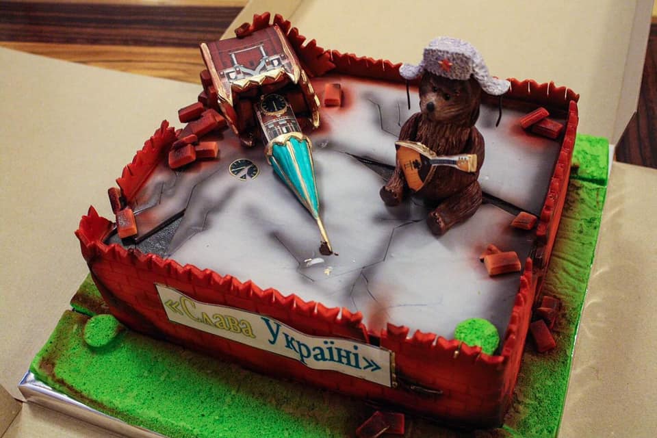 В день своего 40-летия министр инфраструктуры Украины Владимир Омелян получил в подарок торт в виде развалин Кремля.