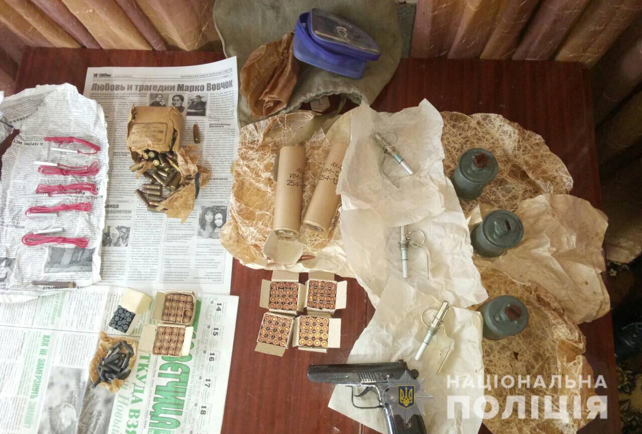 В ході санкціонованого обшуку домоволодіння 62-річного чоловіка поліцейські вилучили більше 280 патронів різного калібру, 6 предметів, схожих на електронні вибухові пристрої, 2 вибухових пристрої до гранат «УЗРГМ-2», 3 предмети циліндричної форми, схожі на вибухові пристрої, 2 мисливські рушниці, пістолет та речовину, схожу на порох.
