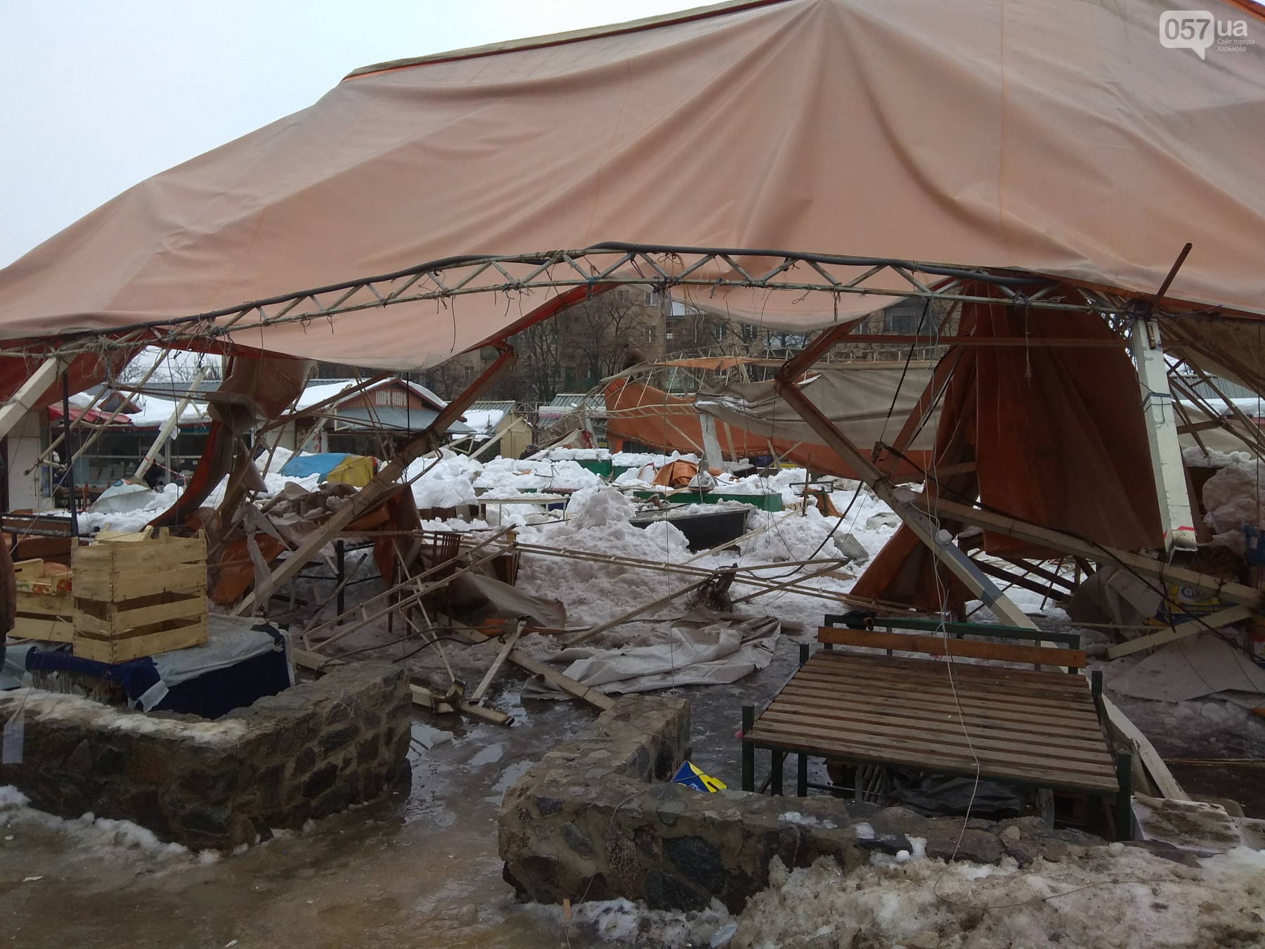 По словам продавцов рынка, павильон рухнул ночью 3 февраля, поэтому никто не пострадал.