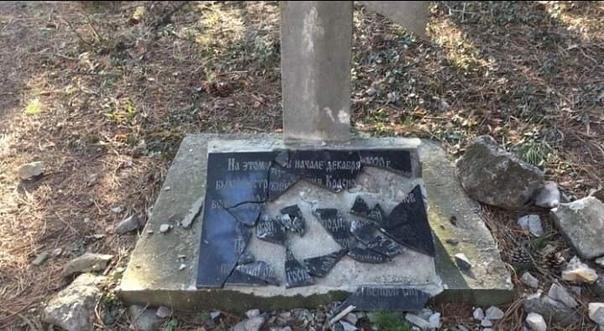 Вандалы разбили мемориальную плиту, установленную рядом с Алупкой в память о жертвах красного террора в Крыму.