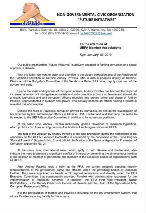 Так вот от имени этой ОО Скупинский ходил по телеканалам и писал заявления против Павелка во все возможные правоохранительные органы. Теперь же от имени этой, в буквальном смысле, бутафорной общественной организации Скупинский обратился и к представителям УЕФА с призовым не голосовать за Павелко. И хотя его письмо вызвало только недоумение у его получателей, которые больше обсуждали не суть, а массу допущенных грамматических ошибок, сам Суркис, прибегнув к такому инструменту, в очередной раз пал в глазах без пяти минут уже бывших своих коллег по УЕФА.