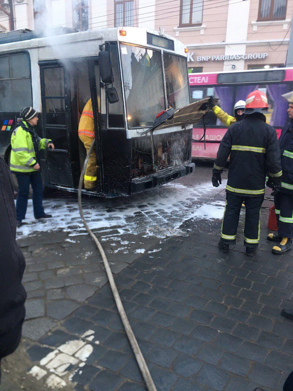 В Черновцах на улице Главной, возле Центральной площади во время движения загорелся троллейбус с пассажирами внутри.