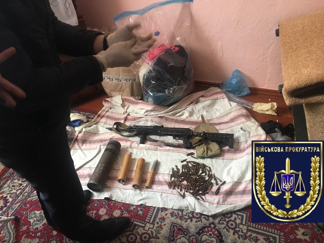 Під час проведення огляду місця події на території військової частини та обшуків за місцем проживання і реєстрації офіцера виявлено та вилучено три одиниці зброї − автомати АК-74 ТК, набої калібру 5,45 мм, димові шашки та інші боєприпаси.