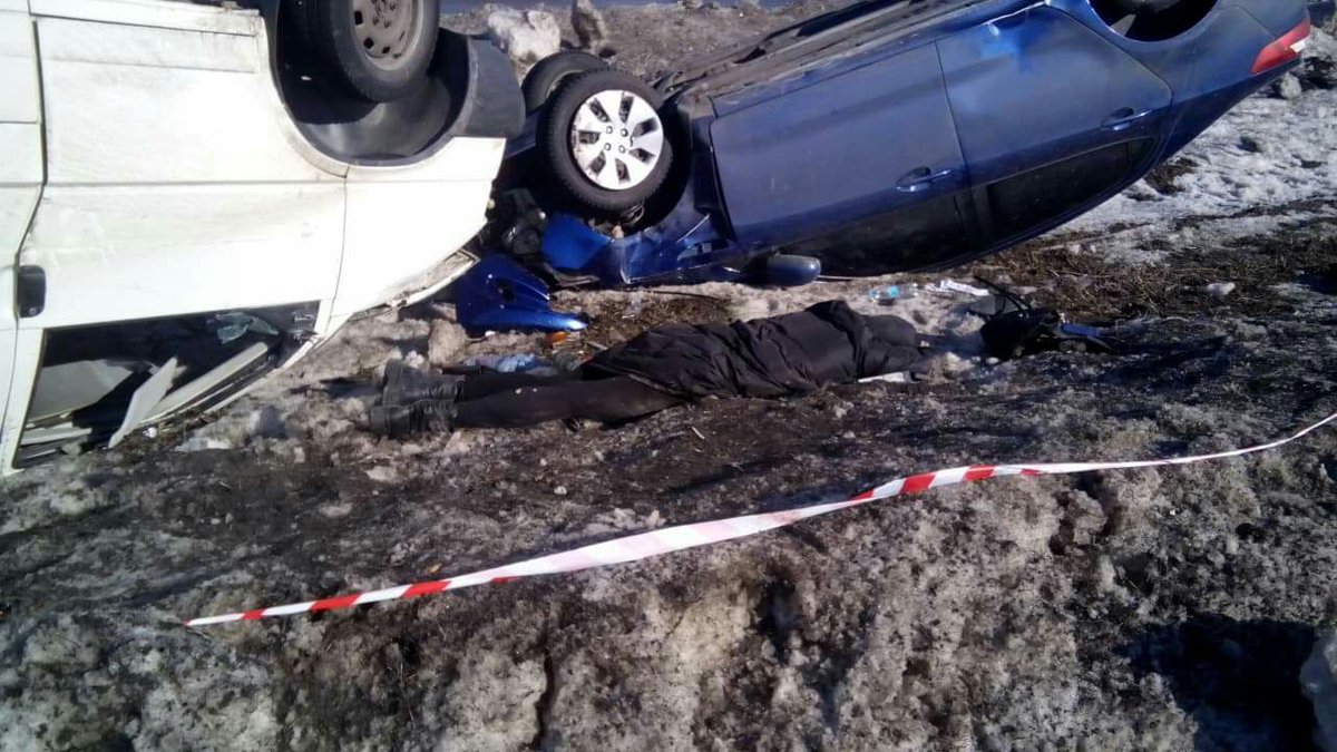 Как отмечается, авария произошла около 8:30 утра 14 февраля. Автомобили Volkswagen Transporter, Kia Rio, ВАЗ 2113 и Fiat перевернулись на крышу.