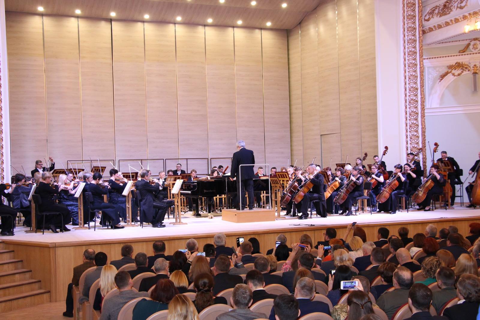 Большой зал Харьковской областной филармонии был построен в конце XIX века как аналог знаменитого зала дворца Тюильри в Париже. В нем уникальная акустика, которую не только сохранили, но и усилили во время реконструкции, оборудовав сцену ракушкой, которая формирует звук так, чтобы он не шел в кулисы и не поглощался занавесом.