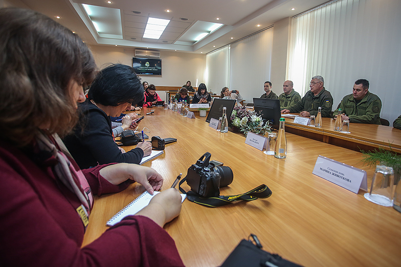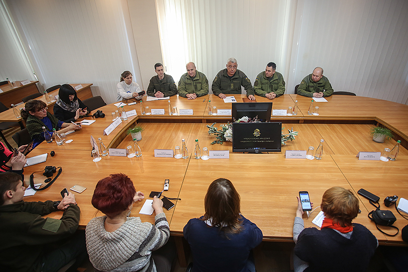 Прес-тур розпочався з зустрічі журналістів з начальником Академії генерал-лейтенантом Сергієм Соколовським та керівним складом навчального закладу. Начальник Академії ознайомив гостей з діяльністю навчального закладу та основними завданнями, які на сьогоднішній день виконує Національна гвардія України.