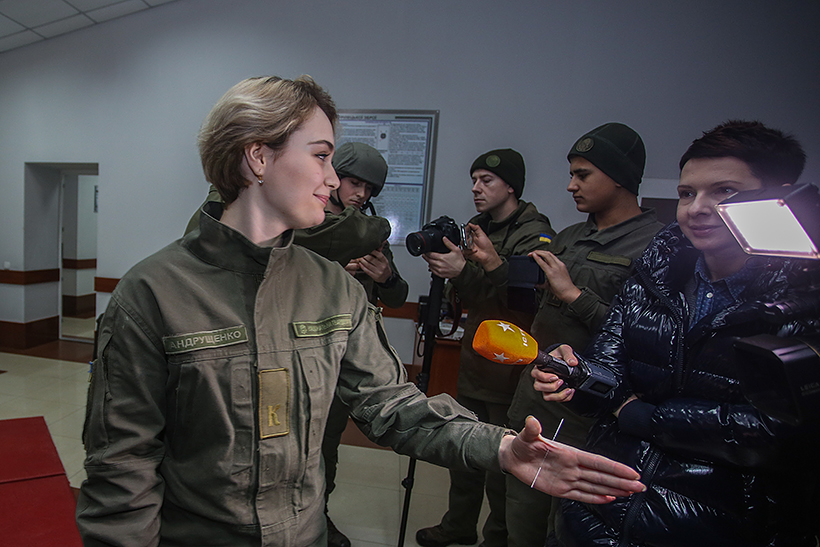 «З того, що я сьогодні побачила в стінах Академії Нацгвардії можу тільки порадіти за курсантів, які мають можливість навчатися у сучасному навчальному закладі військового спрямування. При цьому, приставка "військового" ніяк не бентежить, а навпаки, враховуючи навчальний процес, який поєднується з технічно та інформаційно-оснащеними аудиторіями, в яких викладають висококваліфіковані викладачі показує, що майбутнє України в безпеці», - поділилася враженнями кореспондент Альона Руденко.